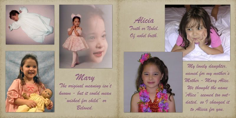 Last year, I created a double page for each of the boys explaining their names. I thought I'd done Mary's also, but couldn't find it if I did! So, here's her new set!